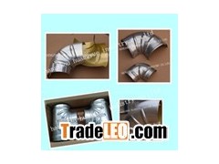 ALUMINUM PIPE INSULATION CLADDING are made in two precision formed matching halves to cover and weatherproof insulated 45° and 90° pipe elbows and Tee covers. These elbow covers were applied in all insulation areas.